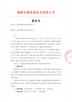 8868体育信息技术有限公司注册地位于福建省福州市,是国内《热血传奇》客户端游戏独占性版权人。对《热血传奇》客户端游戏拥有全部版权,并有权基于版权权利进行该游戏维权。株式会社传奇IP (以下简称传奇IP )对《The Legend of Mir 2》(中文名为“热血传奇"、或“传奇”、“传奇2”、“MIR II”)游戏(以下称为 “授权作品”) 共同享有充分、完整且有效的著作权。经传奇IP授权 , RENAISSANCE INVESTMENT MANAGEMENT LIMITED (以下简称 RENAISSANCE Ltd.)有权在中国大陆地区独占性地对授权作品的网络客户端游戏进行开发、 发行、管理、宣传、推广和运营,针对授权作品的侵权游戏及侵权方,RENAISSANCE Ltd.有权采取必要的措施,并有权将前述权利分授权给第三人。8868体育信息技术有限公司经RENAISSANCE Ltd.授权,获得上述权利,有权在中国大陆地区独占性地对授权作品的网络客户端游戏进行开发、发行、管理、宣传、推广和运营,并有权对侵权行为/主体采取维权措施。